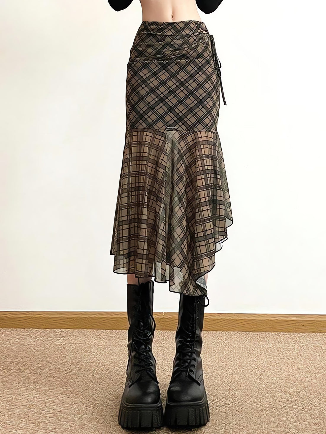 Grunge Plaid Mesh Midi Skirt