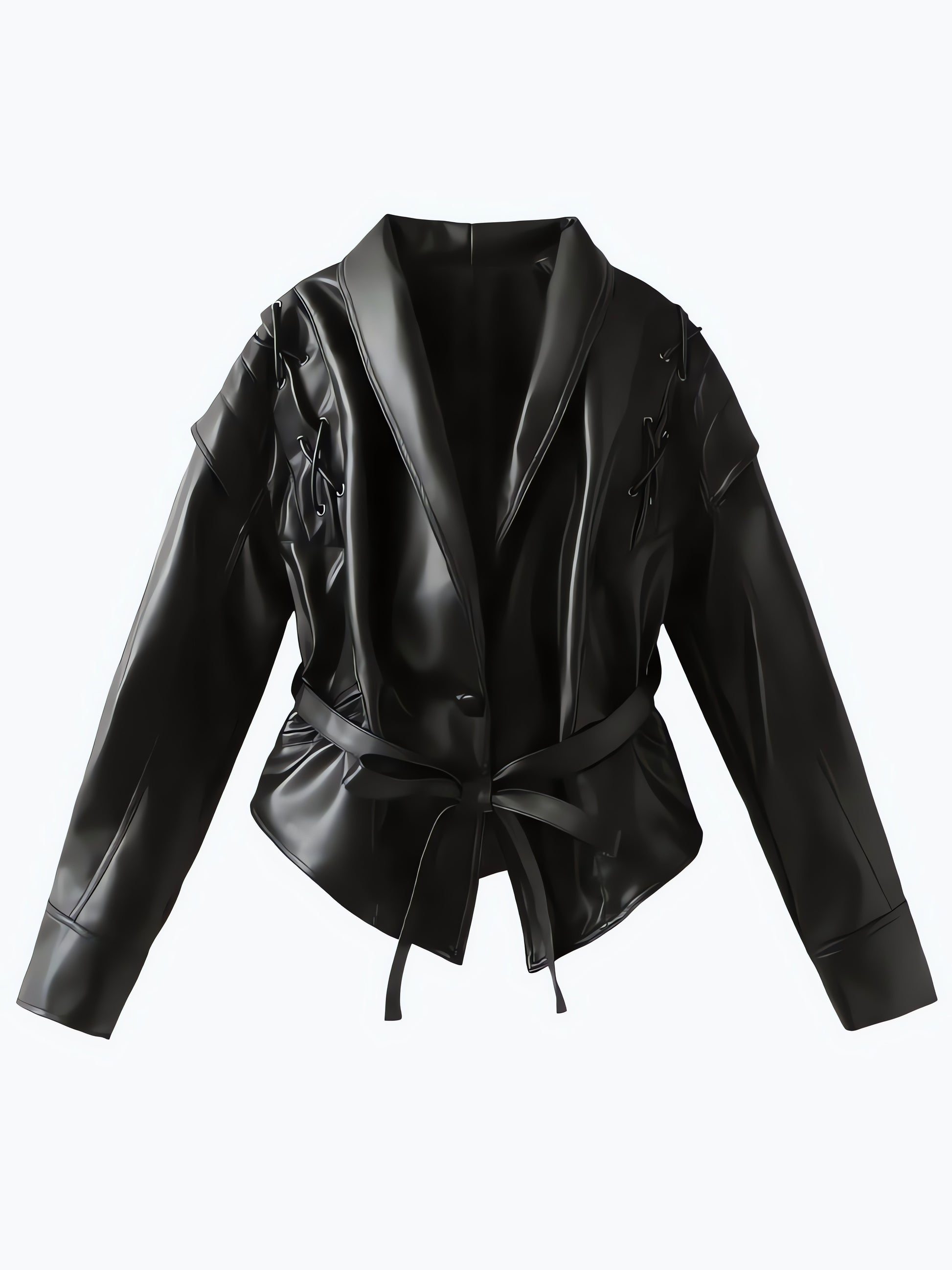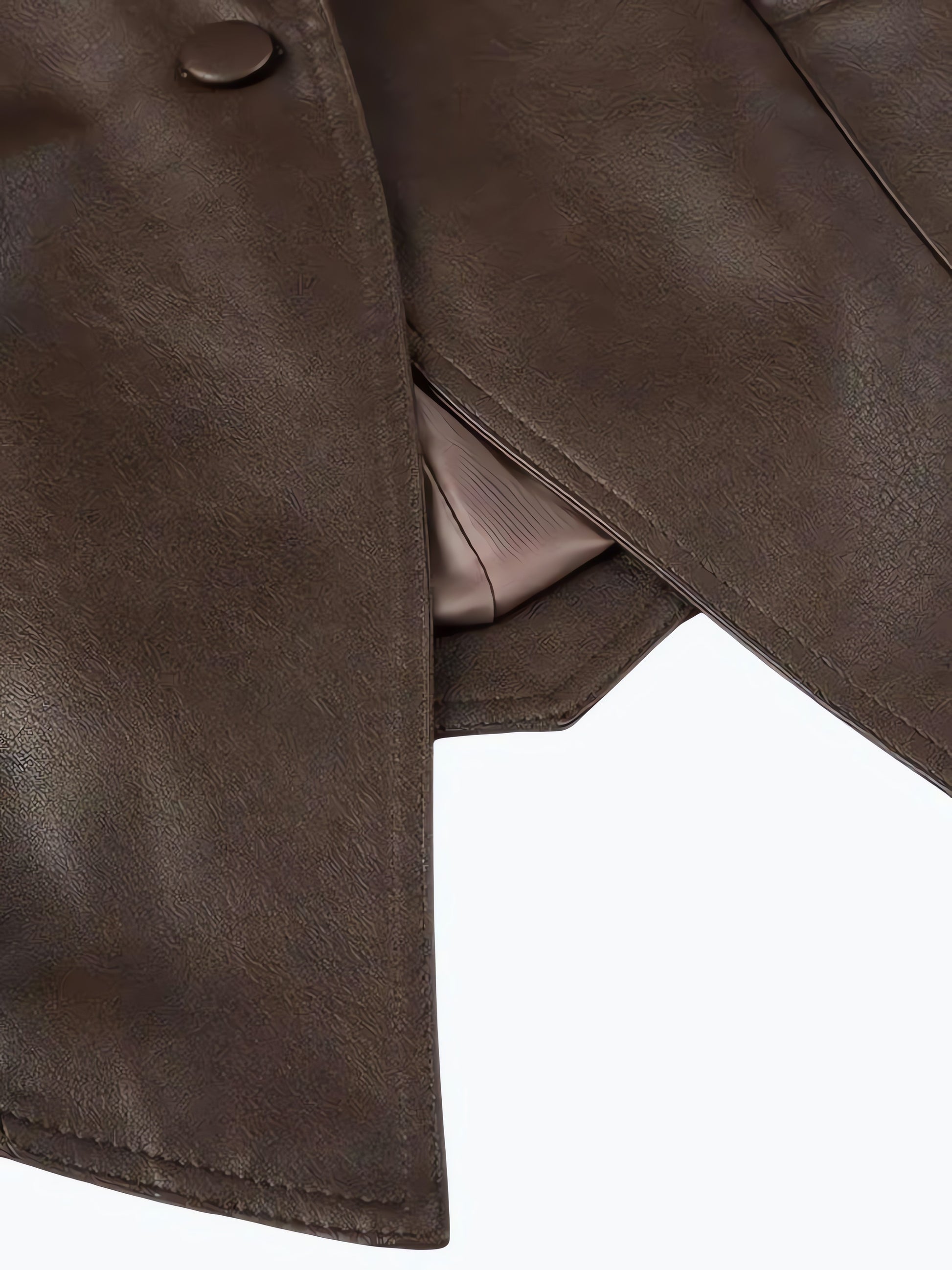 Experience the ultimate blend of style and comfort with our Asymmetric Faux Leather Jacket, a statement piece designed for the modern woman on the go.