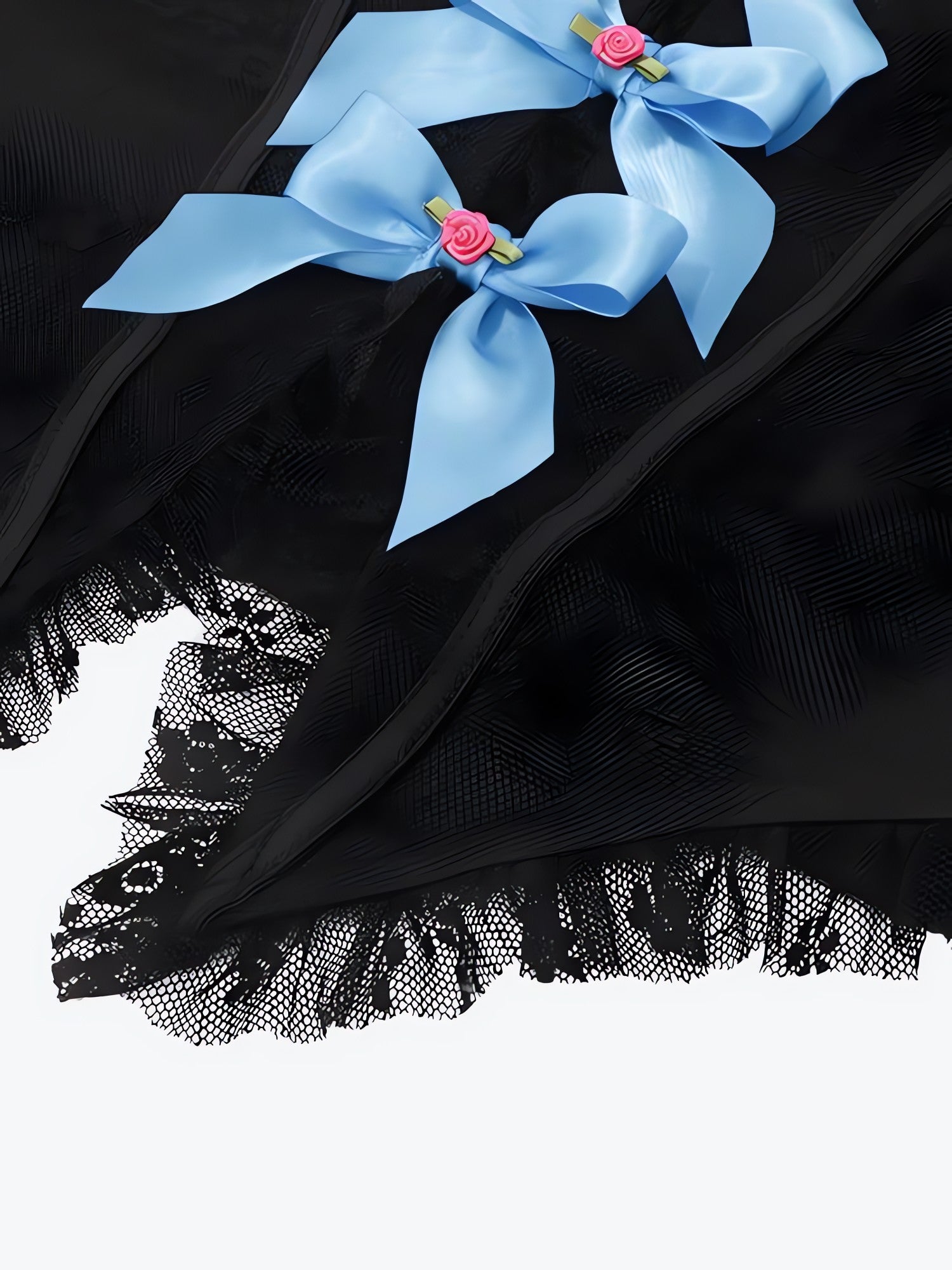 - Featuring delicate blue ribbon trim
