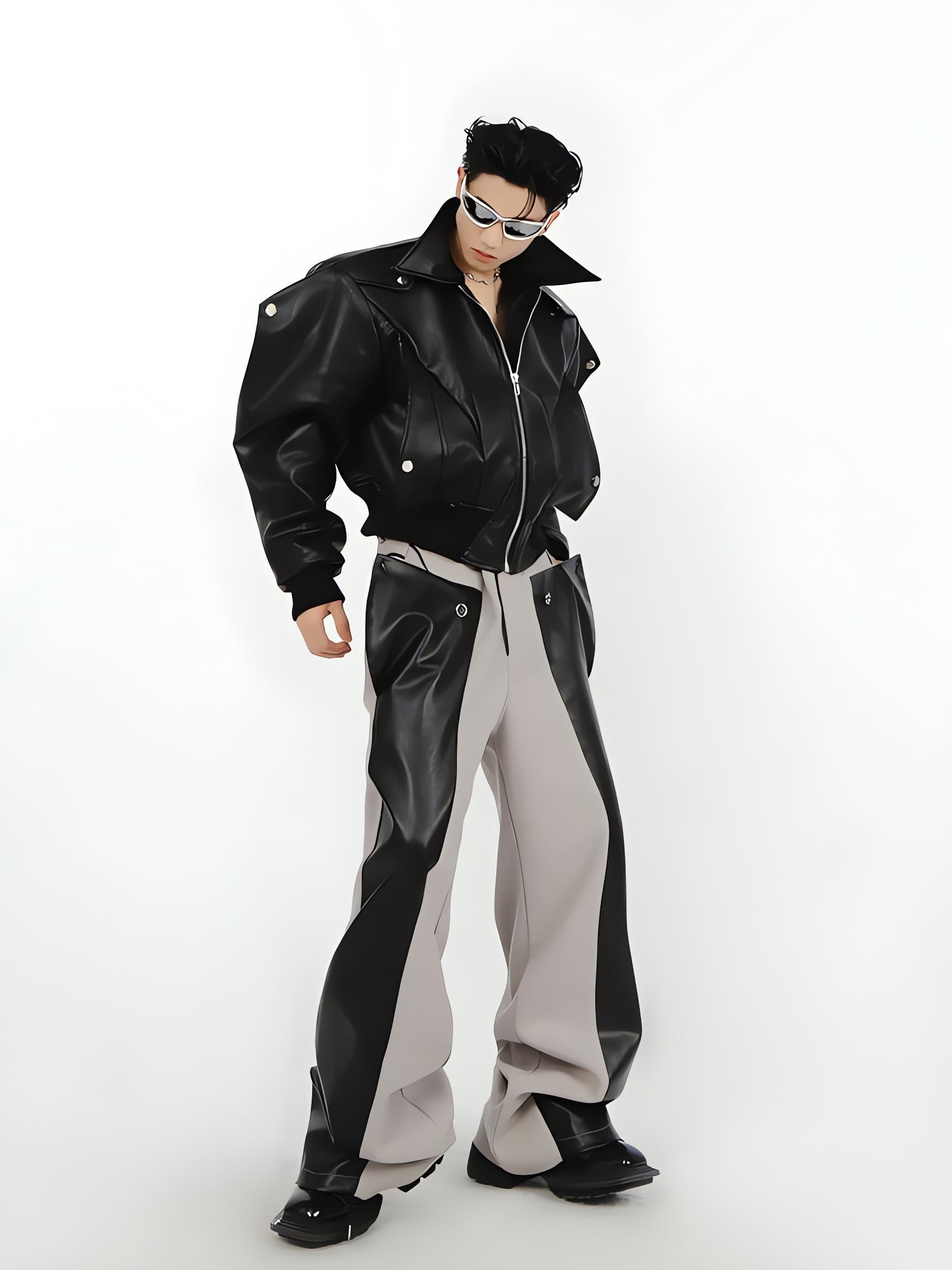 Step into the futuristic style of cyberpunk fashion with these stylish faux leather pants. Combining the edgy look of real leather with the comfort and convenience of synthetic materials, these pants are perfect for making a bold statement in any setting.