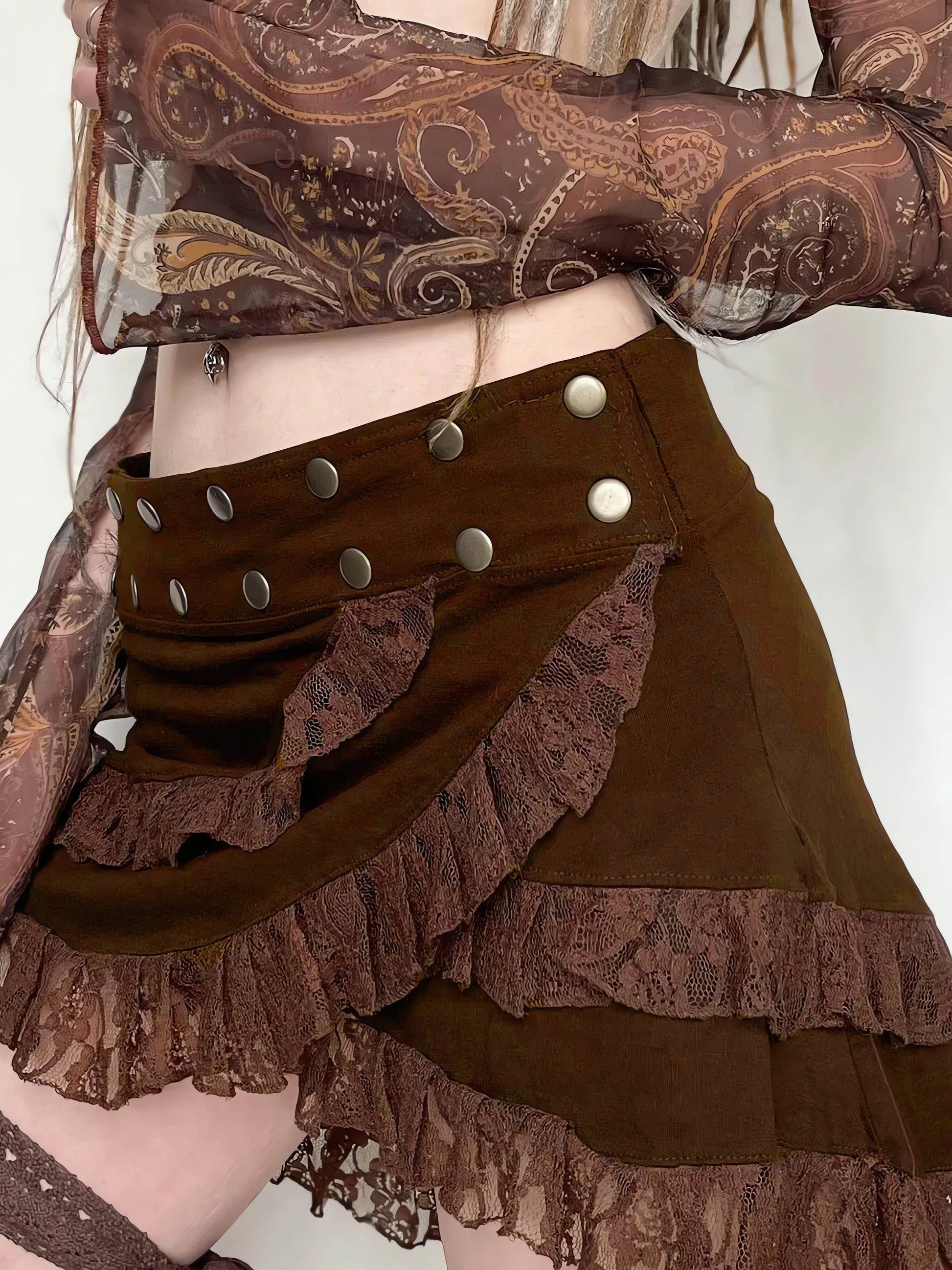 - Stylish Design: The skirt features an asymmetrical hemline with a flowing fabric, giving it a fairytale-like quality. The brown color, reminiscent of rustic elements, adds to the grunge aesthetic.