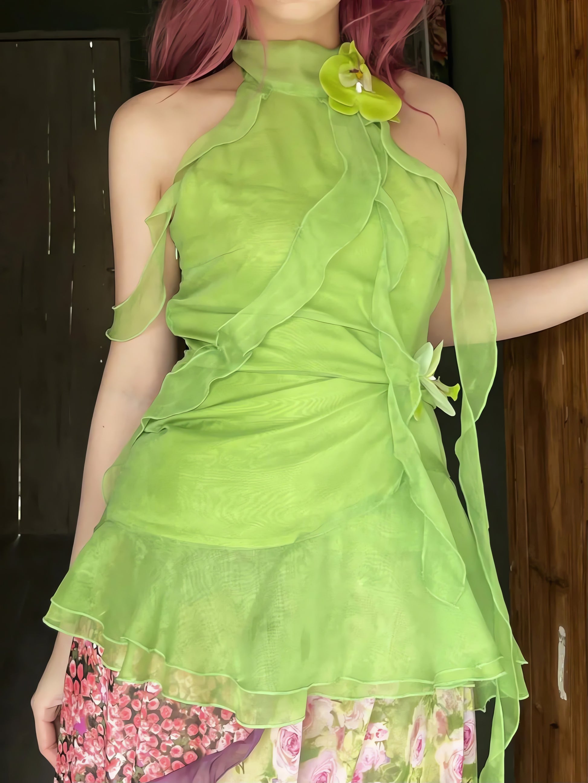 Fairycore Floral Ruffled Top