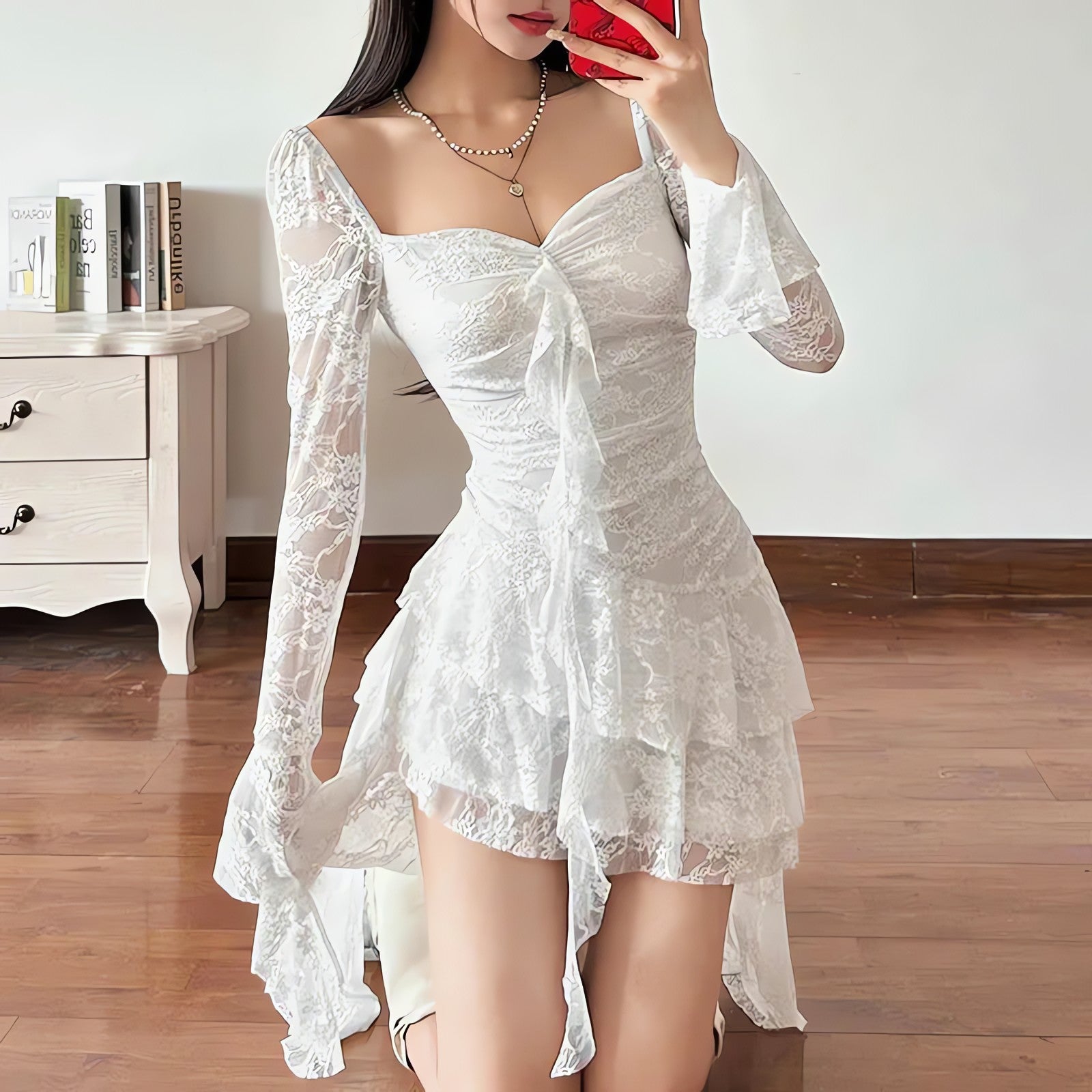 Introducing the Goth Lace Mullet Mini Dress - a bold, edgy style statement that's perfect for your darkest moments.