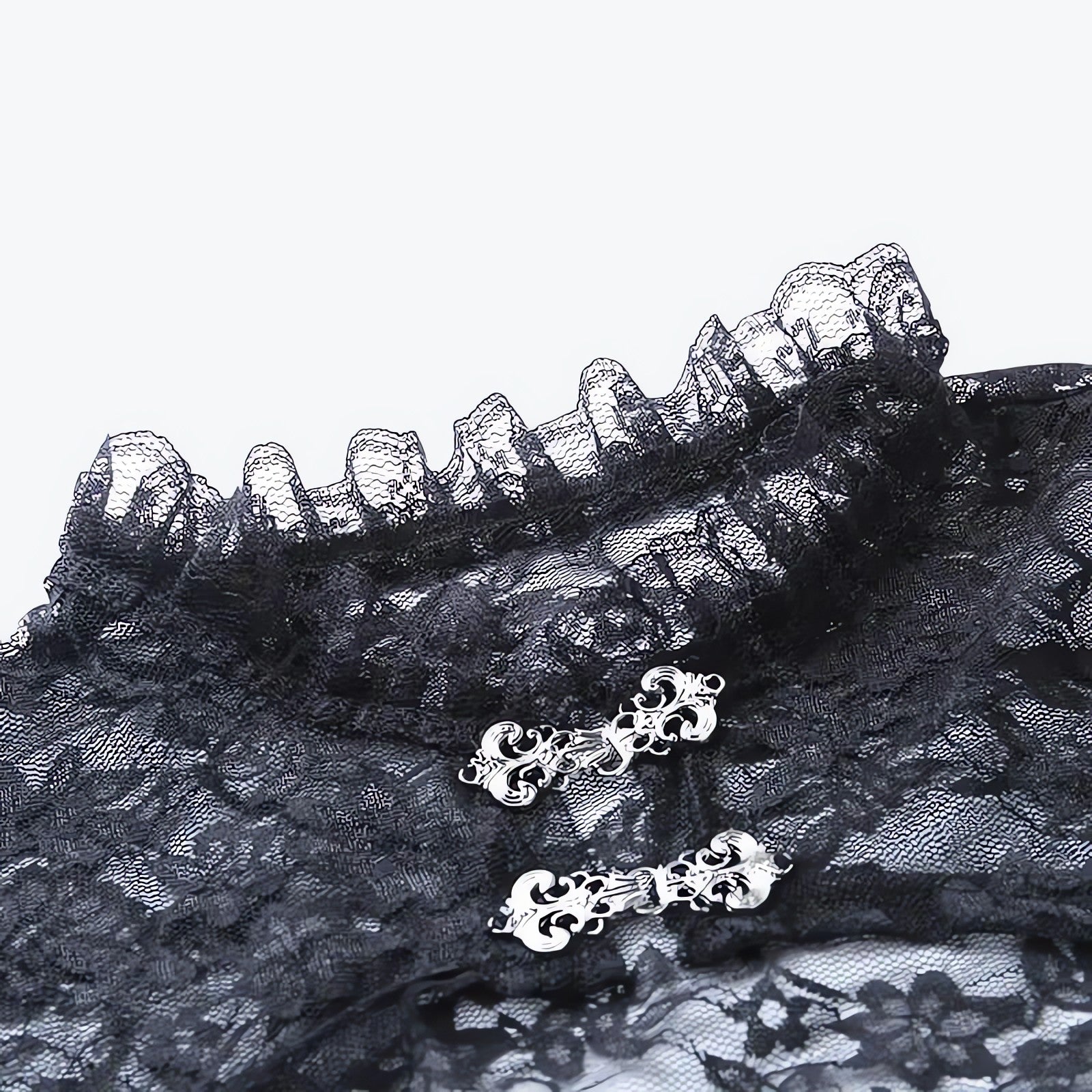 - Additional details like a decorative lace collar and a matching lace trim add to its gothic aesthetic