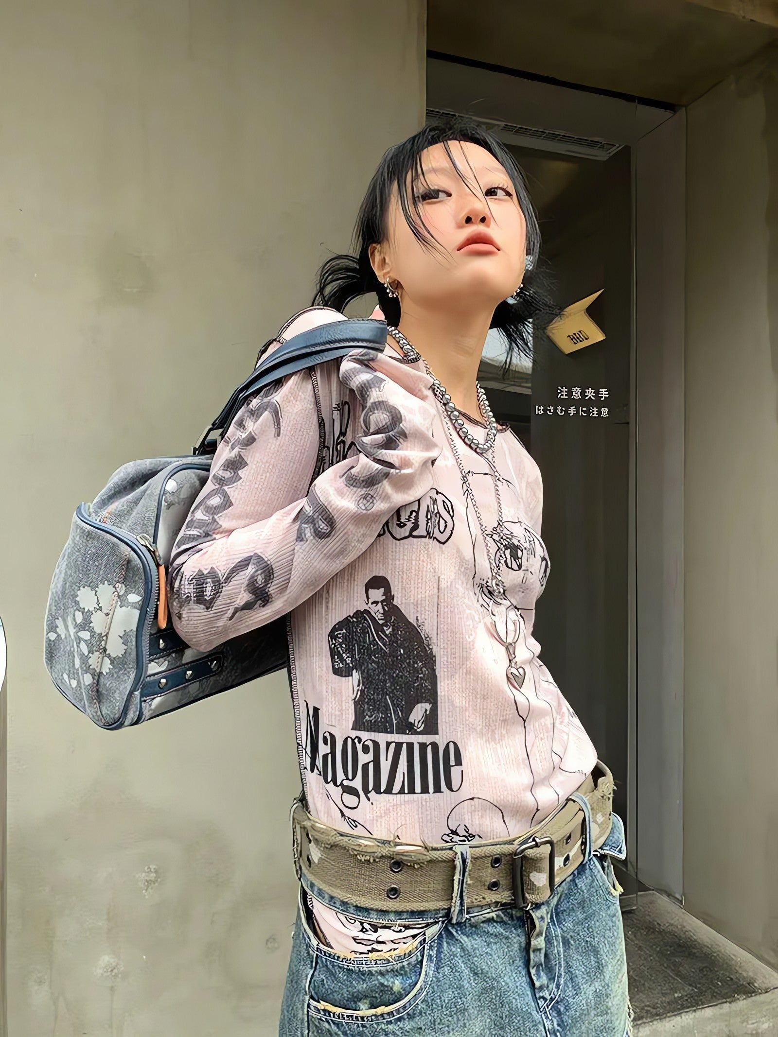 Upgrade your wardrobe with this trend-setting top that is sure to be a conversation starter. Don't miss out on the chance to make a statement with the Grunge Harajuku Top.