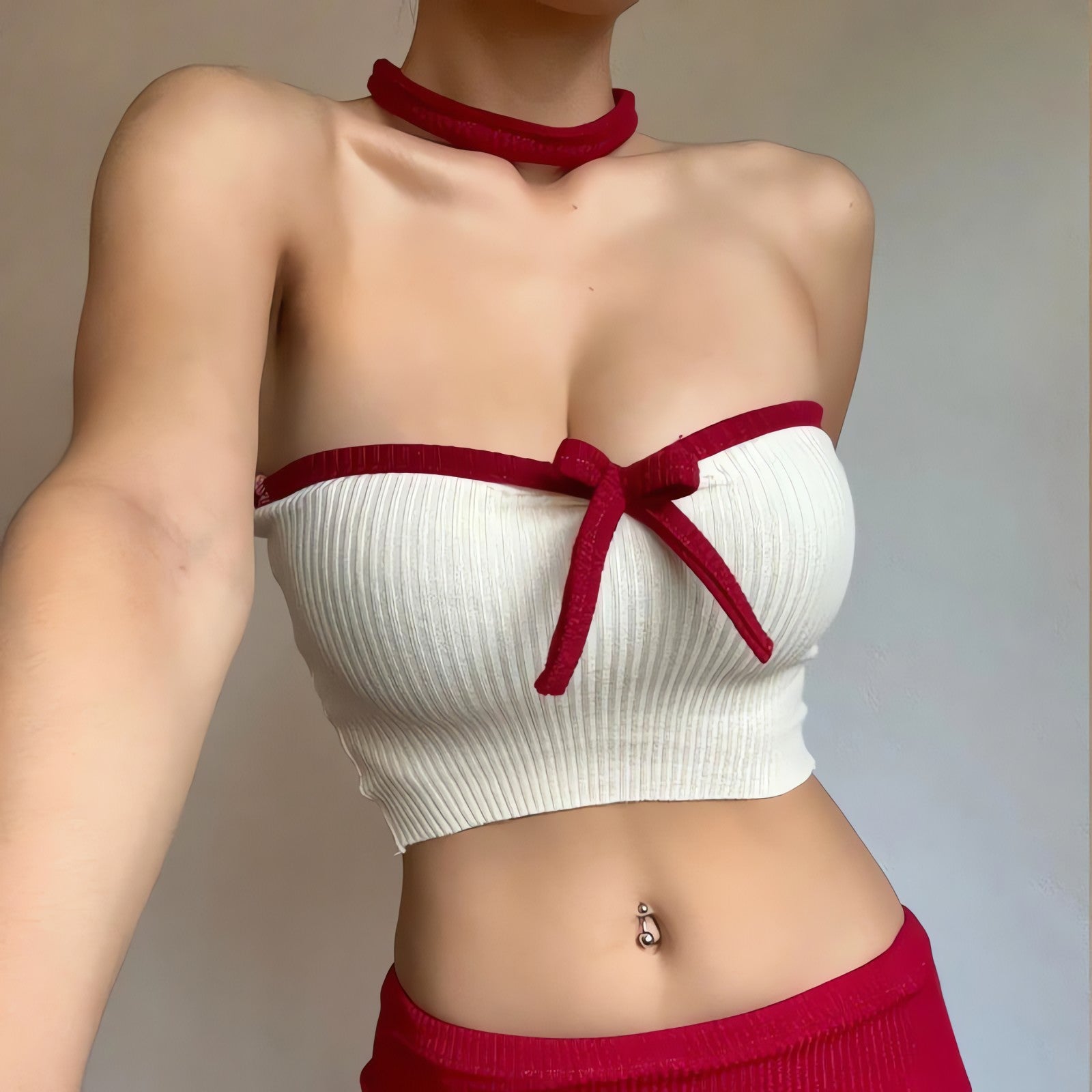 Add a touch of bohemian charm to your wardrobe with the Knitted Strapless Crop Top. This versatile piece features: