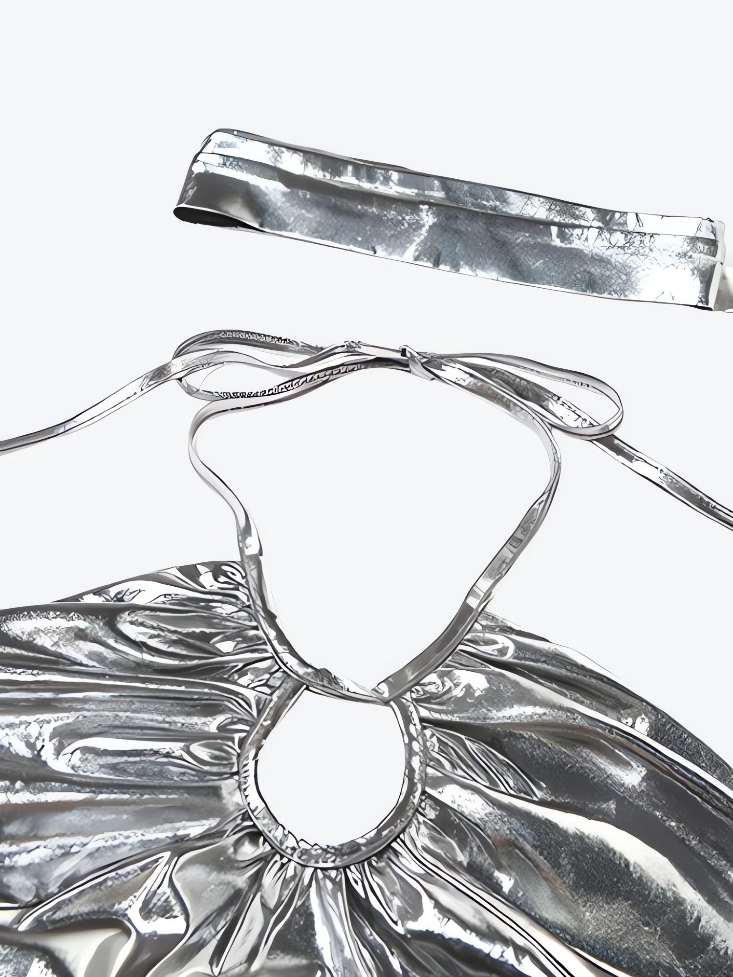 Introducing the Metallic Halter Neck Top - a stunning piece that combines the elegance of metallics with the comfort of a halter neck design. This top is perfect for any occasion, from casual outings to high-end events.