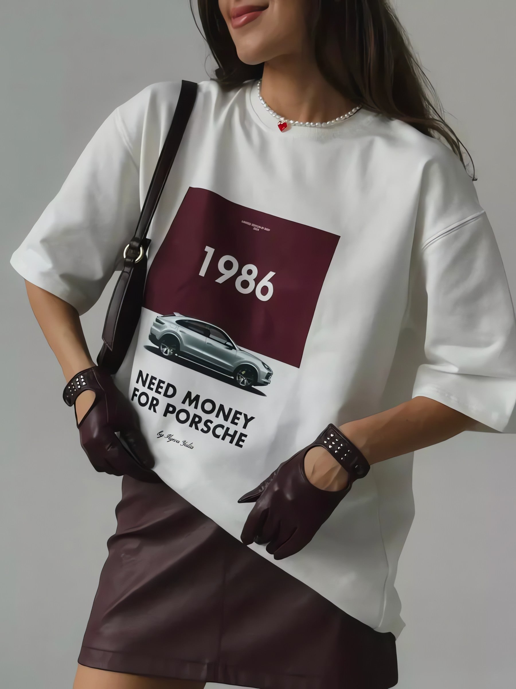 Introducing the 'Need Money For Porsche' T-Shirt, a stylish and humorous addition to your wardrobe! This T-Shirt is perfect for anyone who has an affinity for luxury cars, or perhaps those of you looking to invest in one. The design features a vintage car illustration, adding a touch of classic charm to the piece.