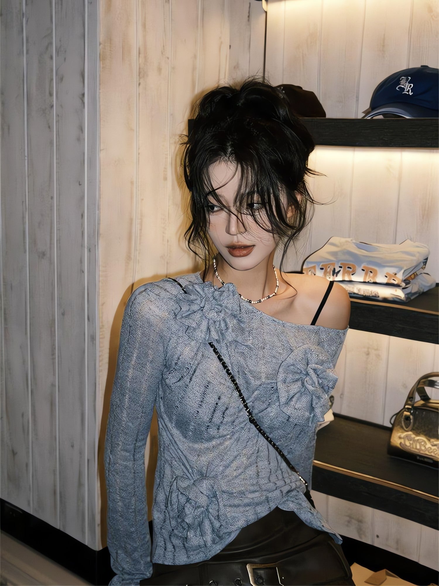 The Ruched Flower Top is not only functional but also visually appealing. With its unique design elements, this top will undoubtedly be a standout piece in your wardrobe. Pair it with jeans for a laid-back look or dress it up with pants and heels for a sophisticated ensemble.