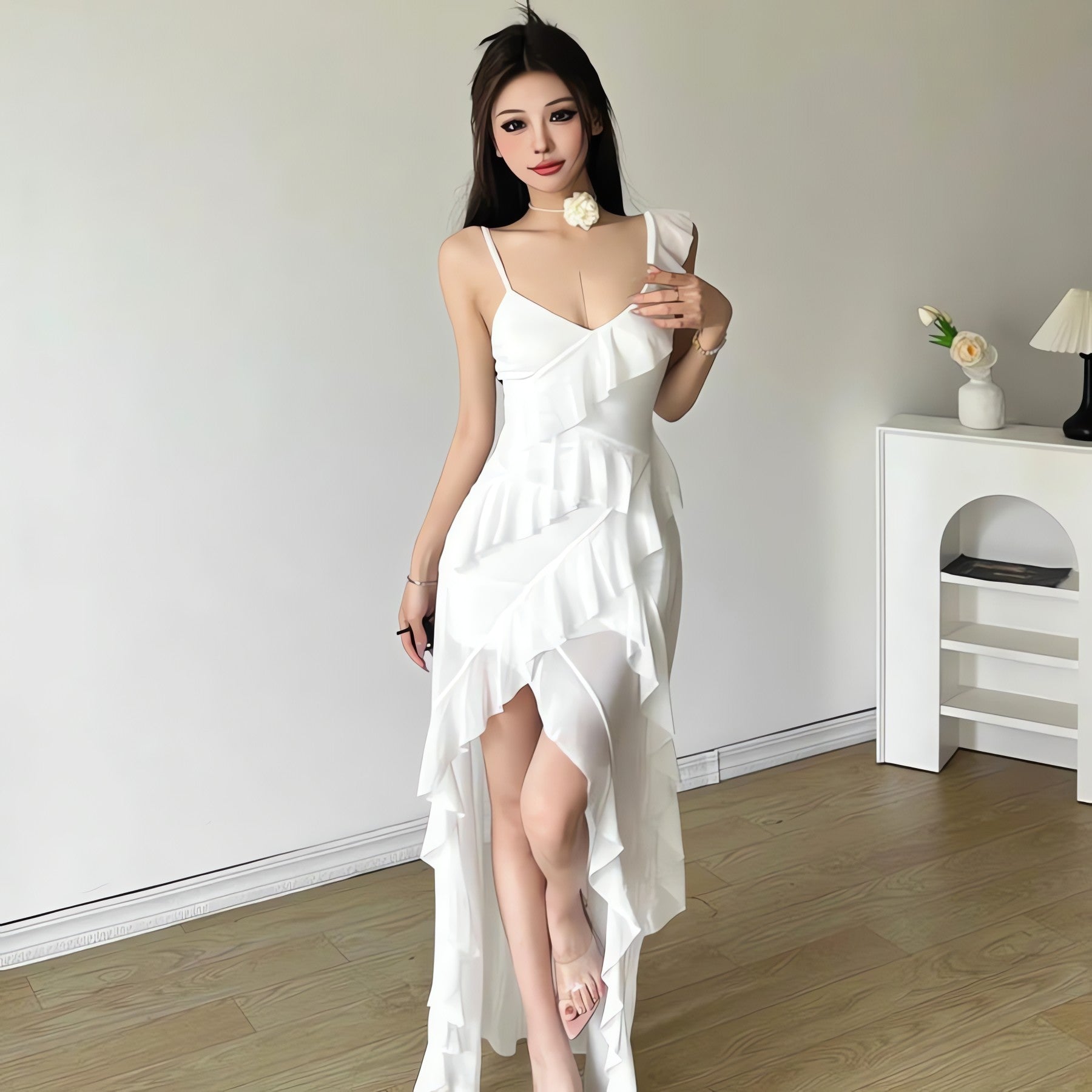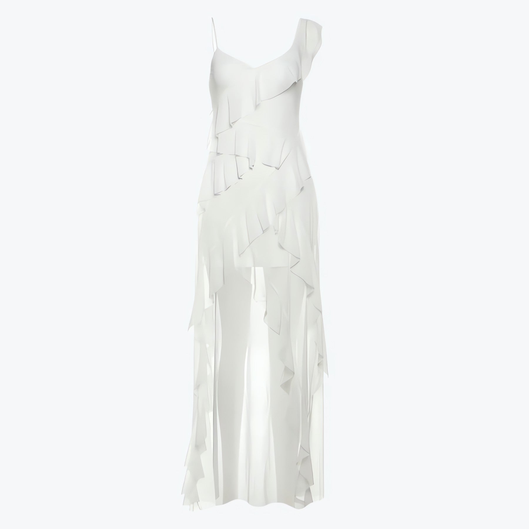 Add this dress to your collection today and be ready for any fashion-forward event. Pair it with your favorite sandals or dress shoes and let the Ruffled Mullet Mini Dress do the rest!
