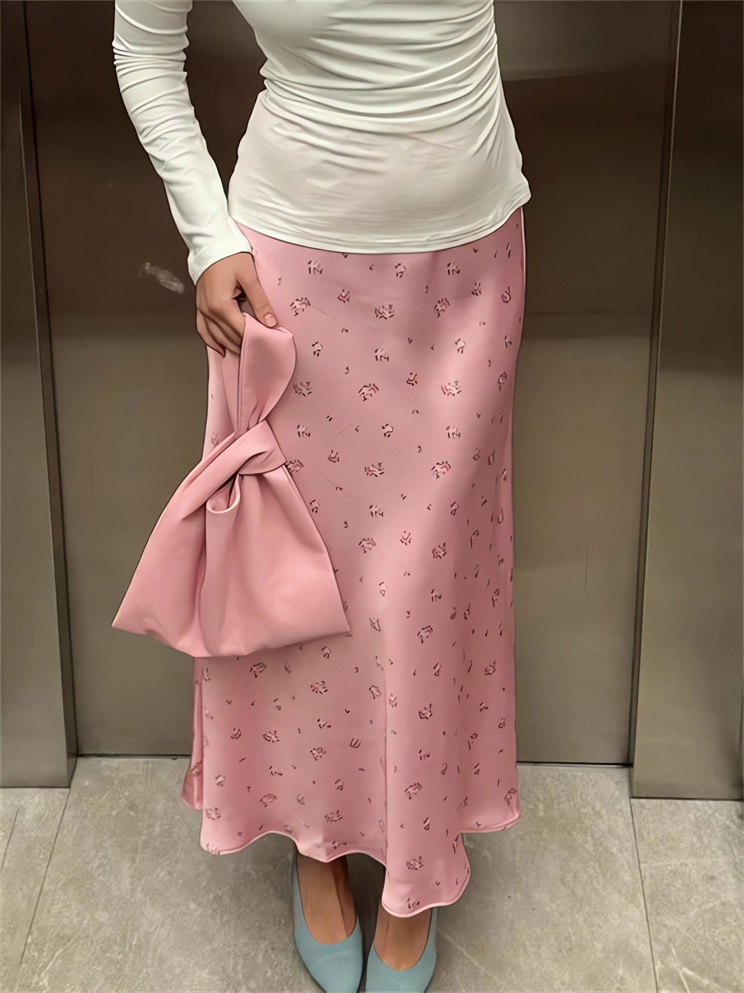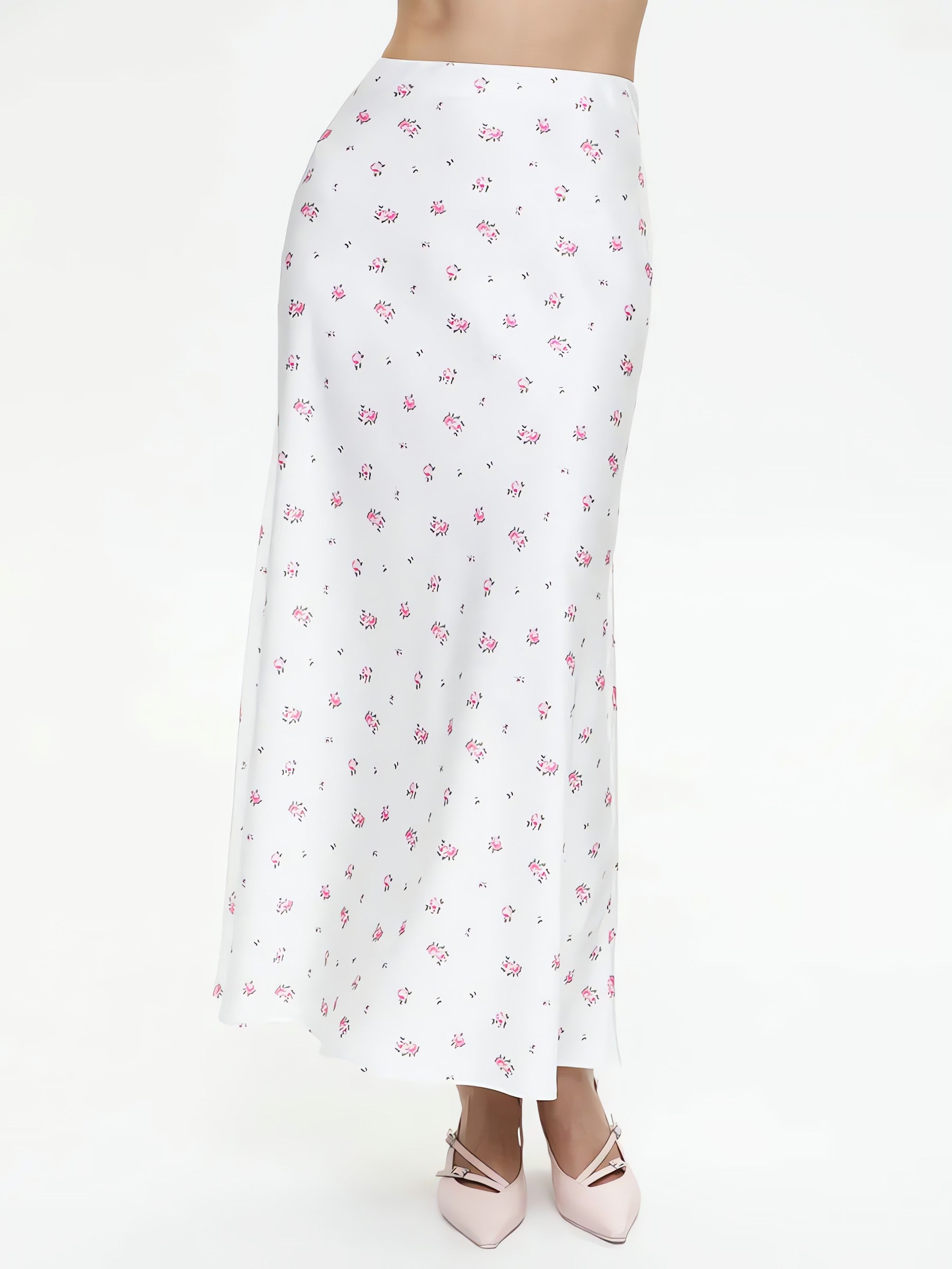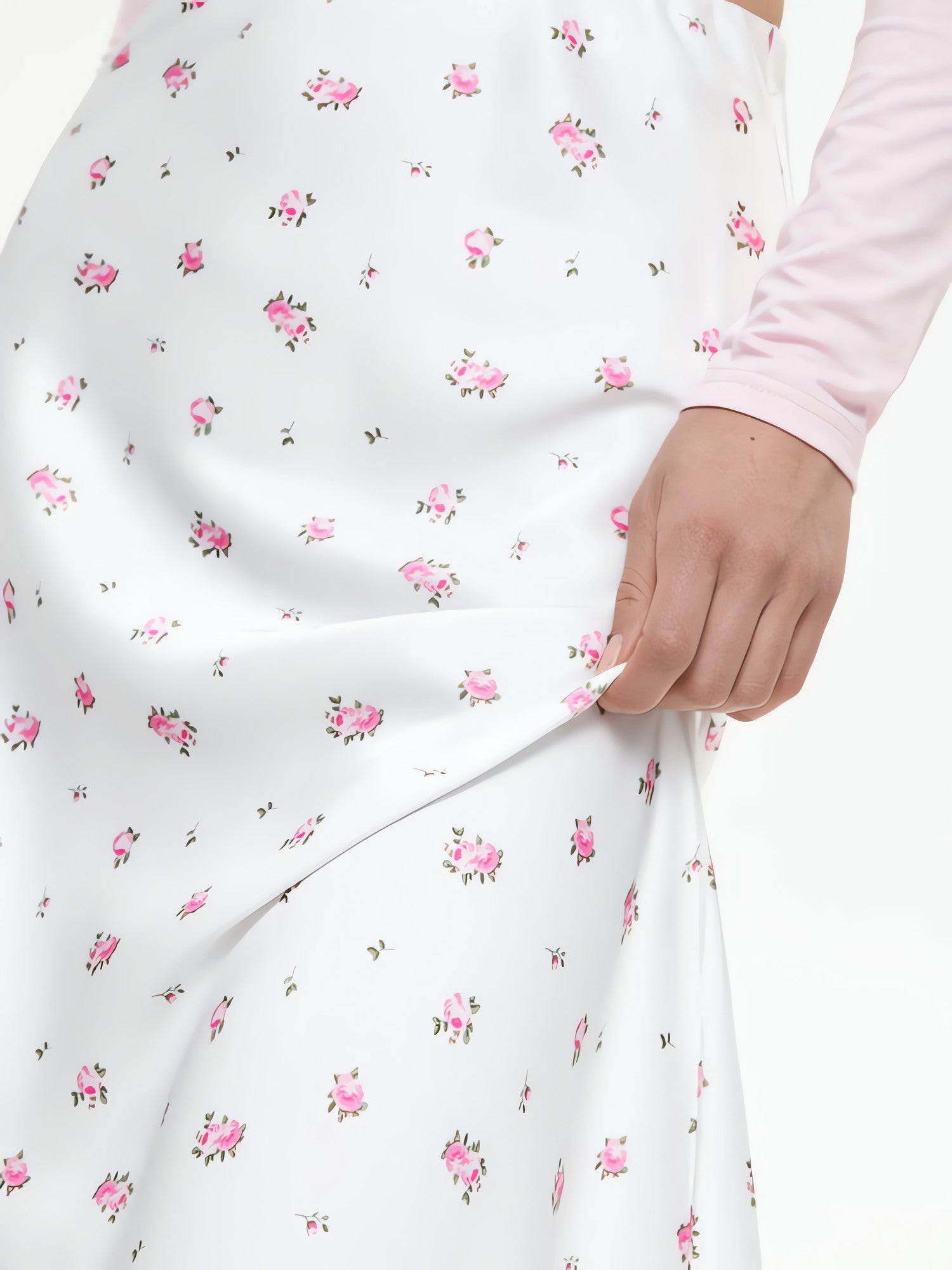 Introducing the Soft Girl Floral Satin Midi Skirt