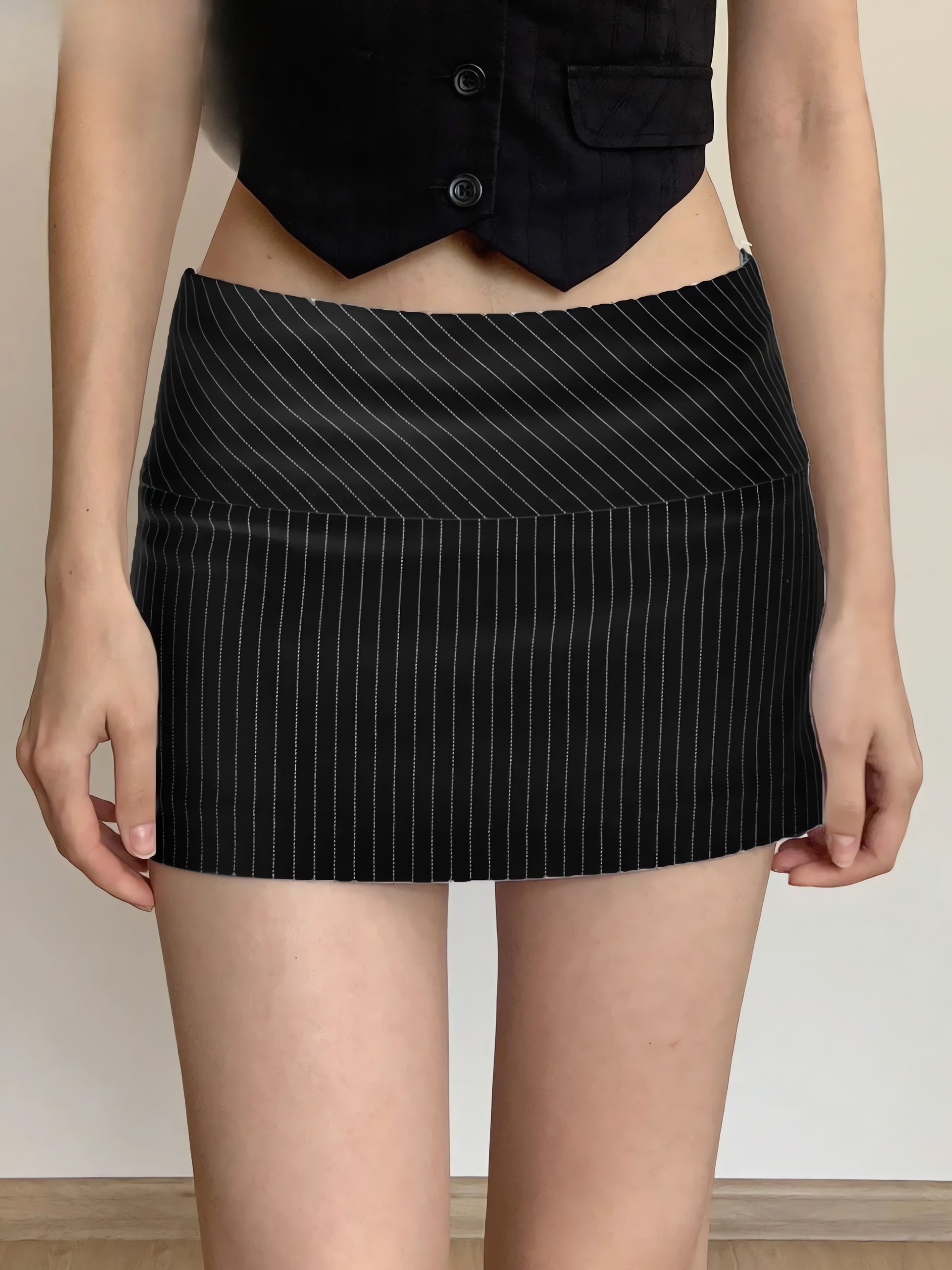 Introducing the Striped Office Mini Skirt - a versatile piece that's both stylish and functional. This skirt is perfect for your daytime office attire or a chic addition to your wardrobe.