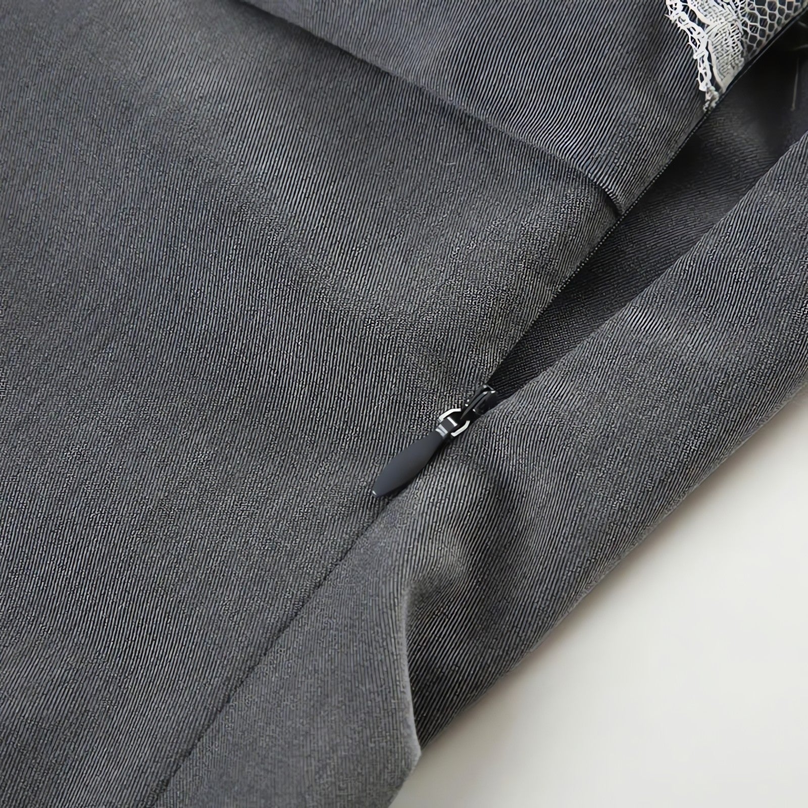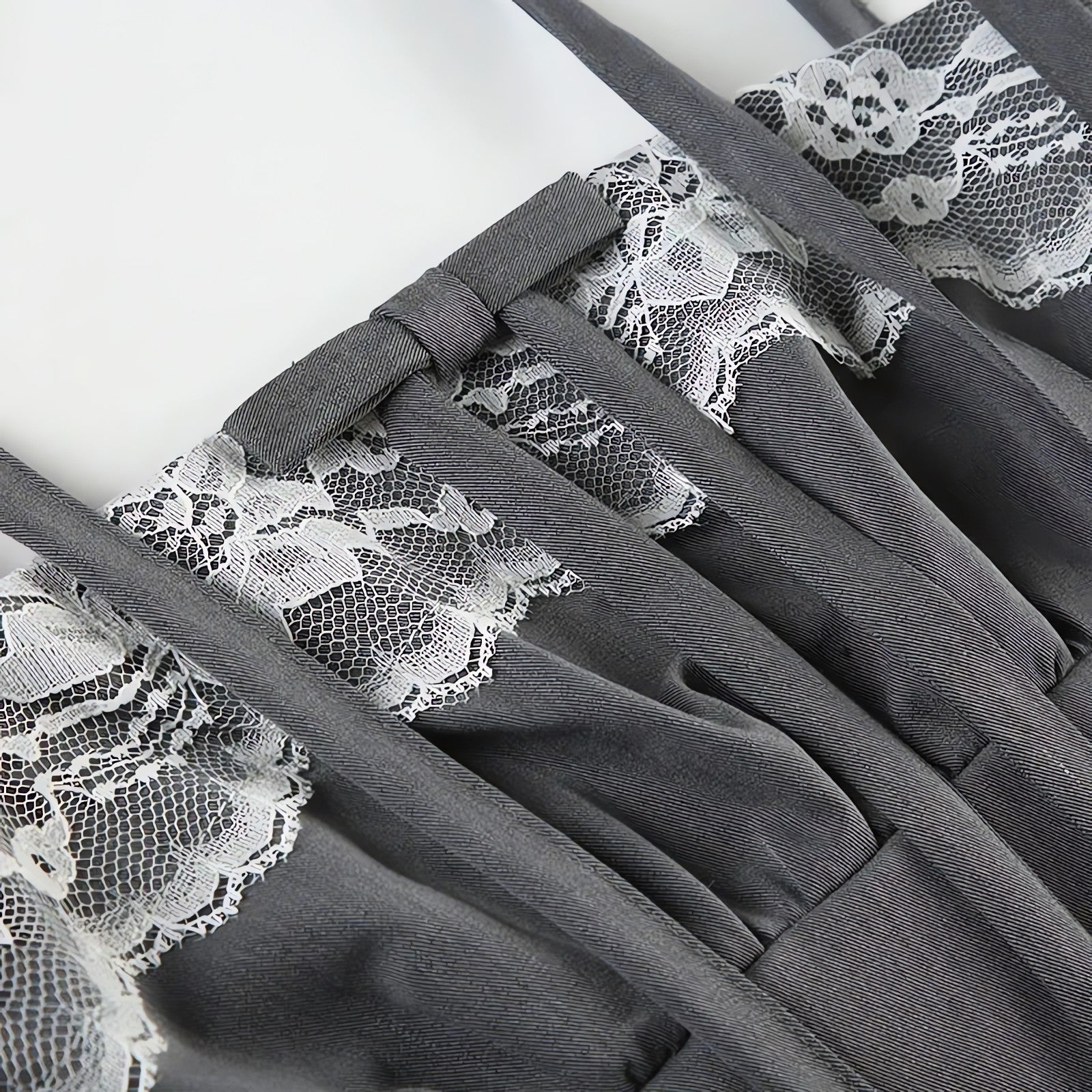- Features a sleek gray color with black lacing detailing on the front, adding an edgy touch to any outfit.