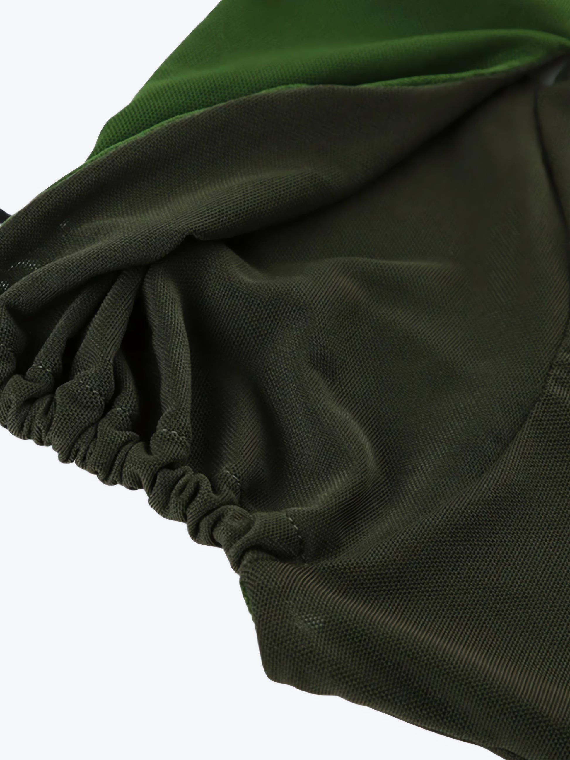 The Twisted Bust Mesh Top is a versatile and stylish choice for any fashion-conscious individual. Made from a green mesh fabric, this top boasts a unique twisted detailing that adds an element of sophistication to the design.