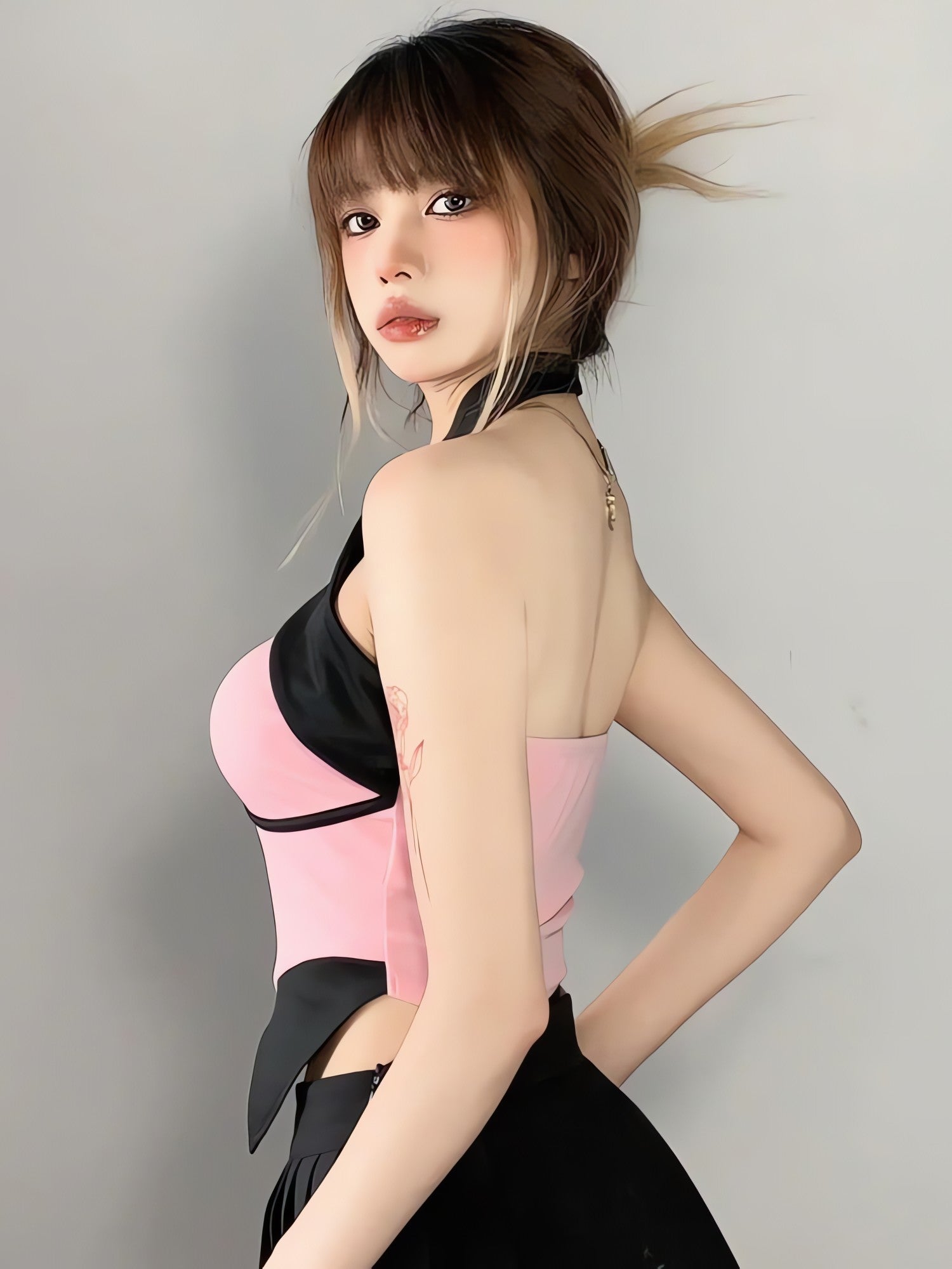 - Cropped neckline adds a touch of edginess