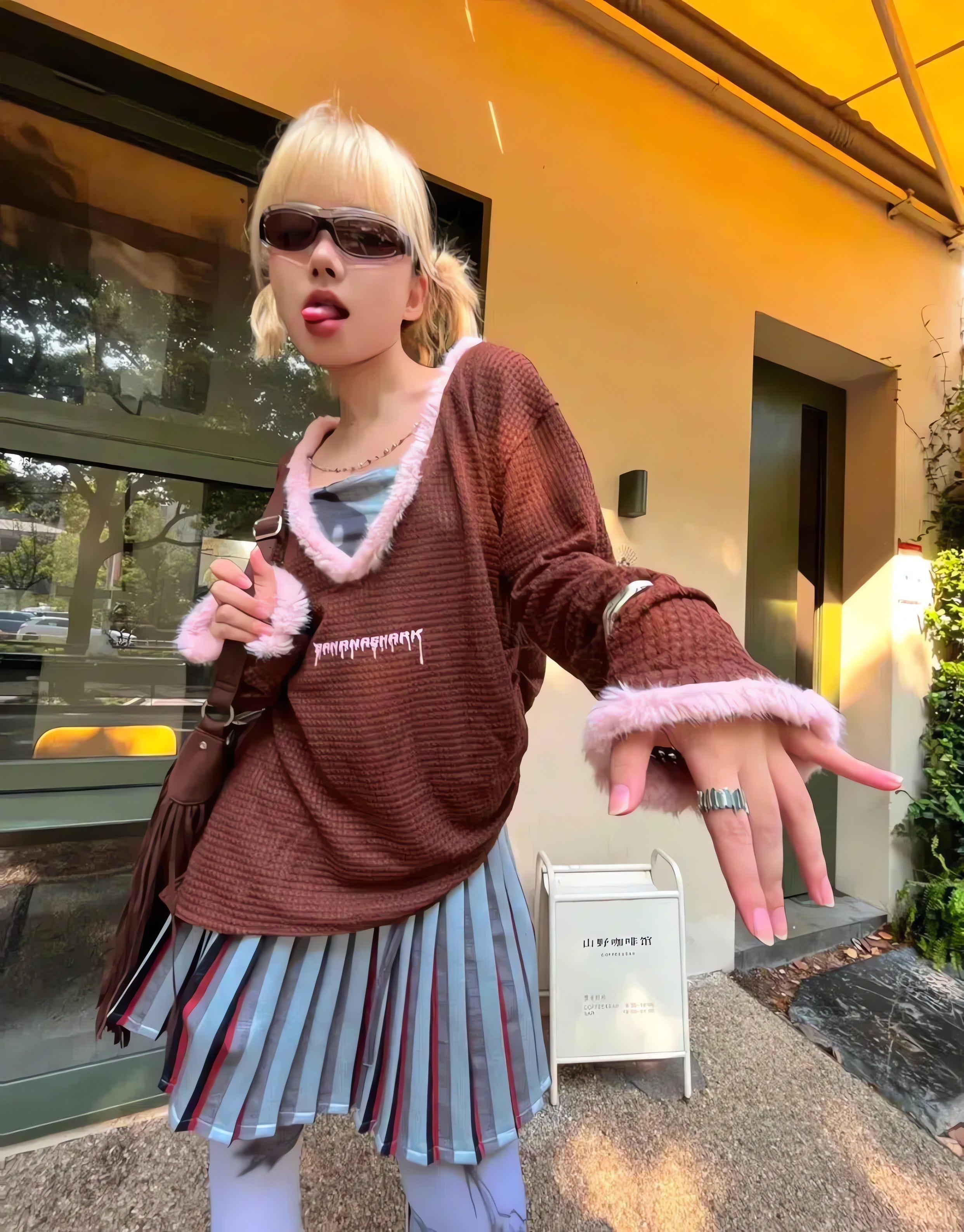 Whether you're looking for a statement piece or something to layer up your look, the Y2K Deep Neck Sweater is sure to become a staple in your outfit rotation!